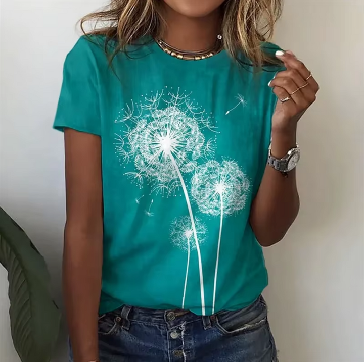 Discover The Vela™, a beautifully designed tee that blends comfort with understated refinement to effortlessly elevate your wardrobe. Featuring a delicate dandelion motif, this top is perfect for relaxed days at home or casual outings where style matters as much as ease.